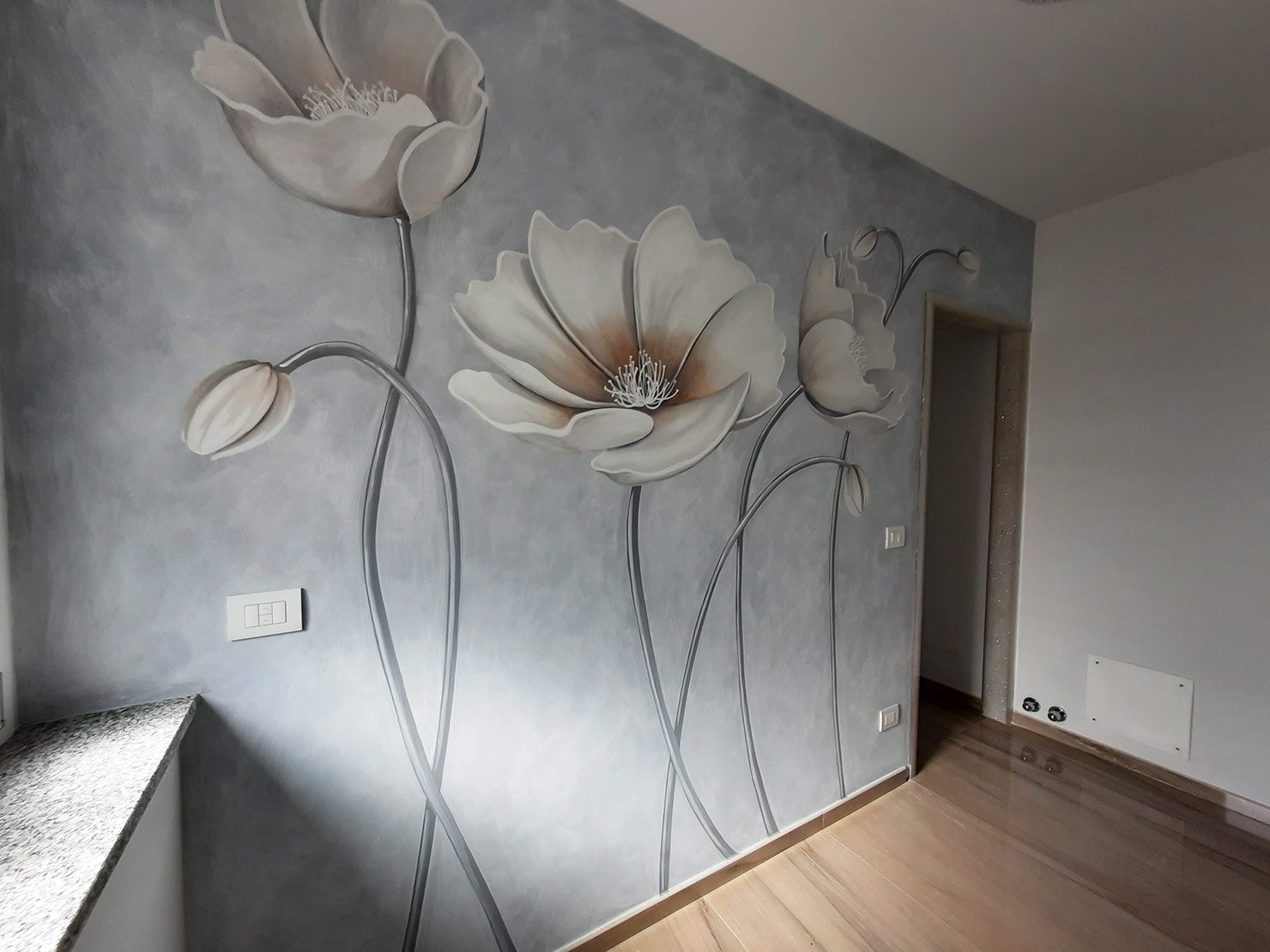 Wallpainting: dipinto murale sulla parete di un bagno presso casa privata – cm 450 x 275 – Calce pigmentata con terre naturali